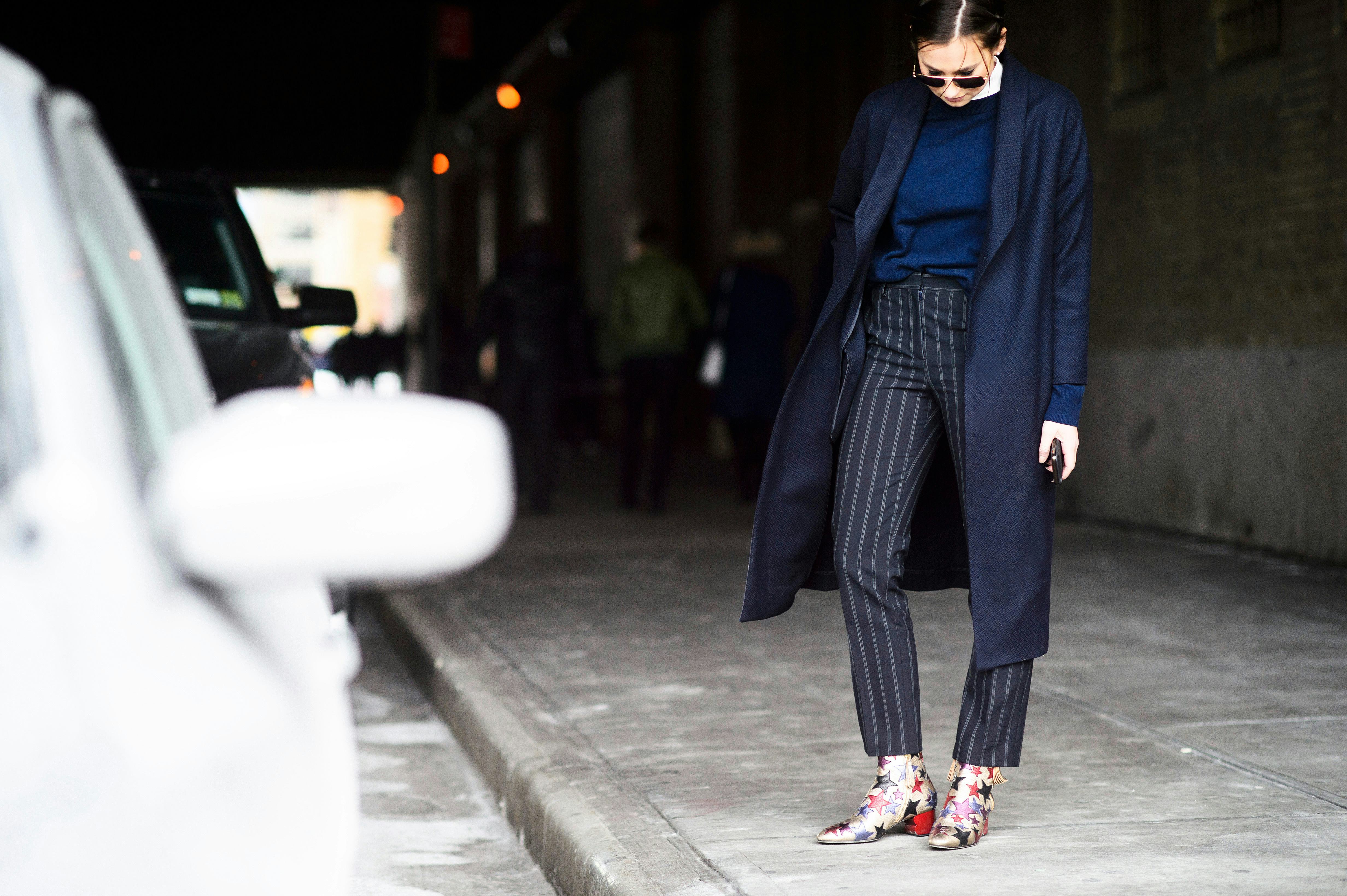 Statement pumps add a cool-girl twist to head-to-toe navy.