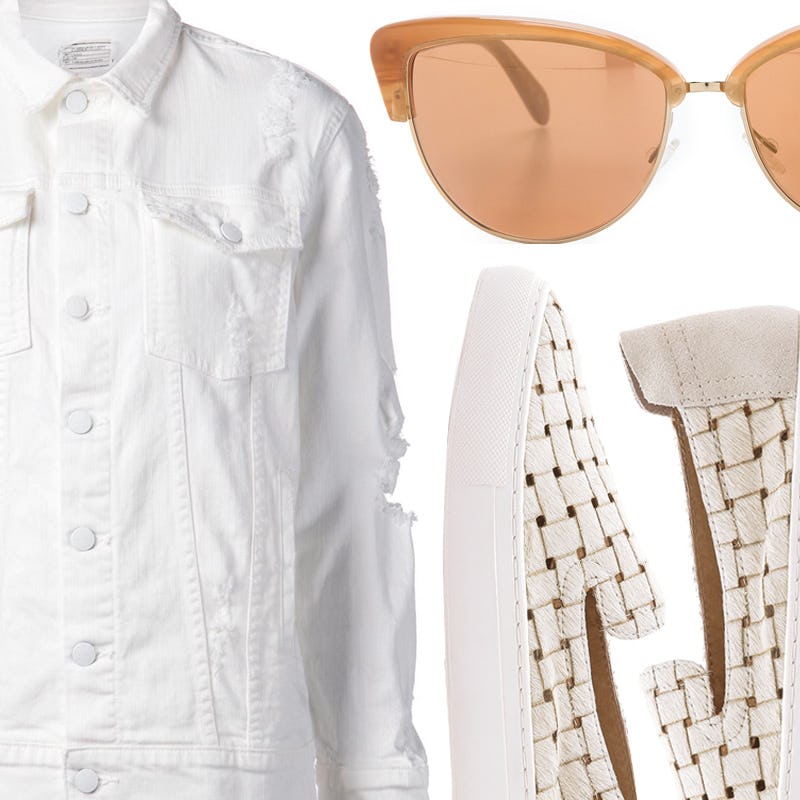 There’s no doubt about it, white is an important part of a woman’s wardrobe. It brings fresh, effortless quality to an outfit and works for any season or event (well, except a wedding). This spring we’ve got three white must-buys on our shopping list: a boyfriend-style denim jacket, a flirty cotton dress, and a pair of desk-to-dinner culottes. Here, we show you how to wear these staple pieces for day and night.