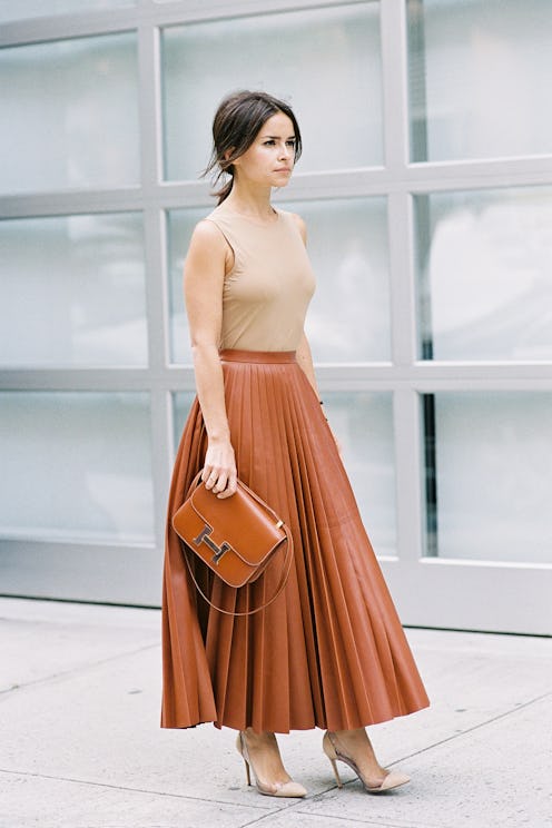 Anything leather is fantastic for fending off the chill in winter, but conjurs images of overheated car upholstery come summer. Thankfully a sleeveless dress or a-line skirt pack a serious style punch without the threat of heat exhaustion, just keep extras light and choose thinner pieces.