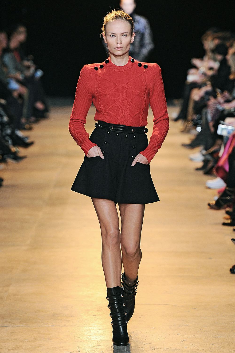 Looking cute for a date when it’s chilly out can pose quite a challenge (particularly at this stage in the season), which is why Isabel Marant’s Fall 2015 collection caught our attention. The models donned body-con sweaters and flirty miniskirts with stacked-heel booties, striking the perfect balance between cozy and feminine. Simply add tights and a tailored overcoat to brave the cold.