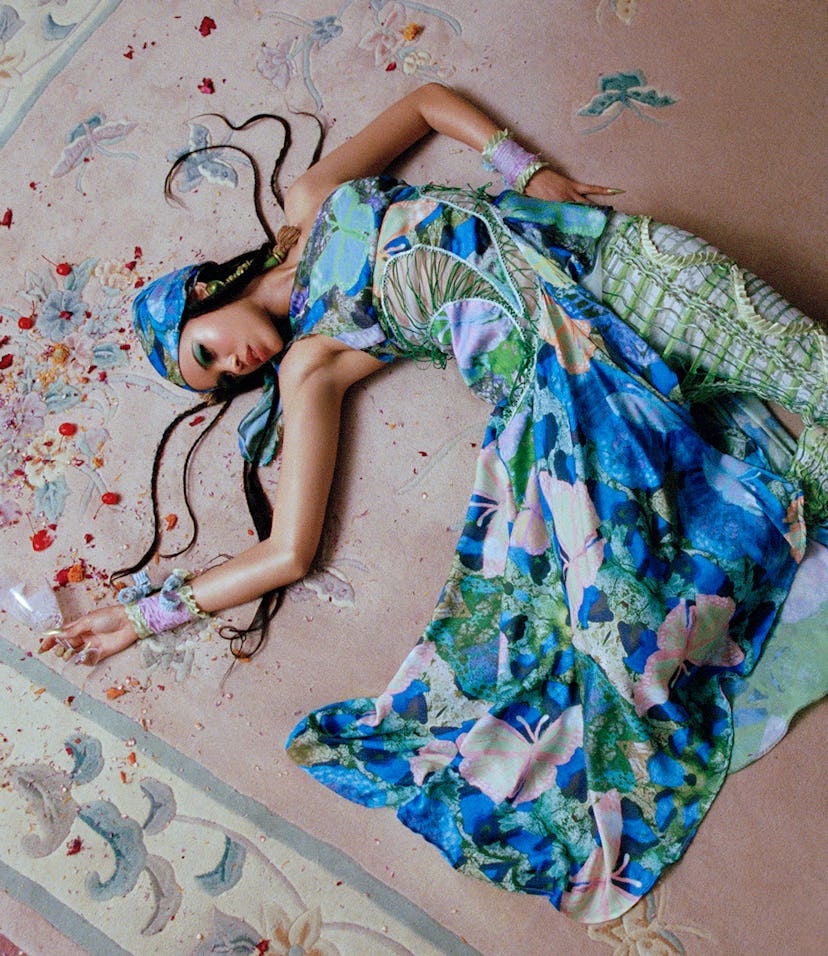 It’s rare to be present for a birth of a brand. Those attending emerging fashion label Loisida’s debut on May 25 seemed to understand that they were witnessing something special. Crowded into booths and tables inside The Box, New York City’s impossible-to-get-into nightclub frequented by some of the boldest It girls — like Rihanna and Julia Fox — a score of drum-heavy, oontz-oontz music set the mood. Models ambled down the makeshift runway in lace-tiered bralettes, miniskirts with rounded, exaggerated hips, and cutout trousers that stopped just shy of the upper pelvis. Concluding with interpretive dance, acrobatics, and ribbon-twirling, Loisida’s Resort ‘23 show was a baroque-meets-burlesque, all-out soirée.