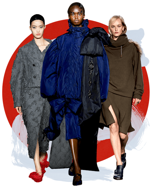 The most dramatic entrances (and exits) made this coming autumn will likely be from those wearing the new evening standard du jour: a dress or top with a long and narrow train in the back. For something party-ready, check out the updated Princess Diana “revenge” mini at David Koma; formal wear-wise, Erdem’s elegant grey skirt set — complete with fringe-y embellishment — or Simone Rocha’s bow-bedecked jacket and midi are winning ways to go.