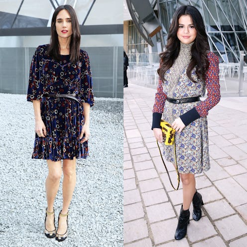 Take a tip from Jennifer Connelly and Selena Gomez's playbook by cinching a thin belt over a longer-sleeved floral dress.