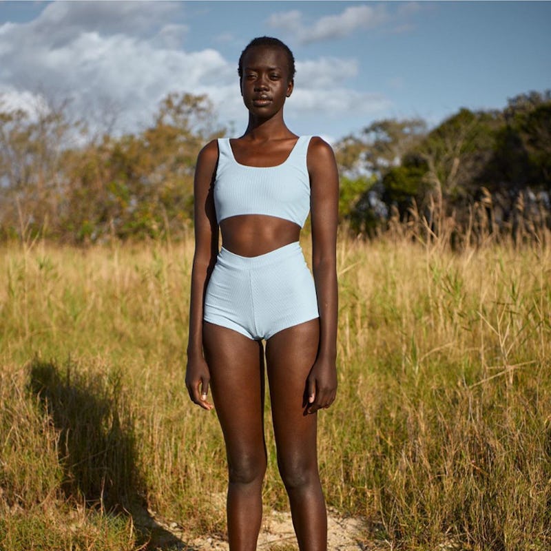 The brand sets responsibility goals for itself each year and has most recently been moving into more recycled or organic fabrics. “We’ve also gotten rid of all virgin plastics in our packaging,” she says. “For swim especially, we made sure to use only certified recycled fabrics.”