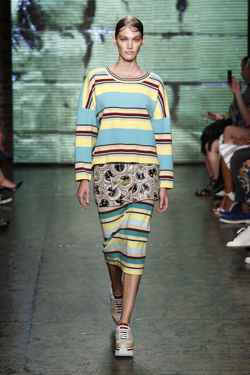 Move over beloved Breton stripe, there’s a new look in town. Combining our love of color-blocking and vivid brights, the spring runways have been littered with thick, bold stripes in unexpected colors and combos. Paired with equally bold prints, smaller stripes or simple solids, the look adds a knockout punch to any outfit. We highlight some of our favorites from the shows and pick a few pieces for you to incorporate into your closet now.