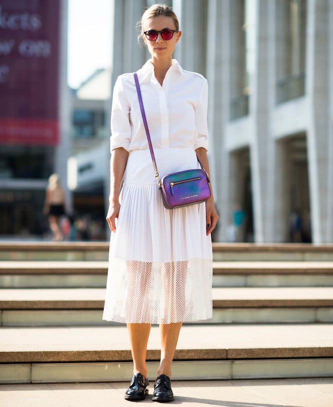 NYFW street style is known for its envelope-pushing ways—every fashion girl under the sun dials it up a notch for the festivities. That all translates into endless sartorial inspiration on the sidewalks of New York City. Prime example: this weekend-ready, all-white getup, made fall appropriate with the help of edgy accessories.