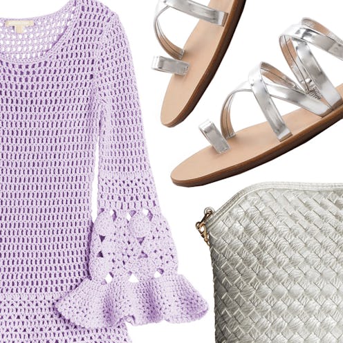 A swingy, crochet dress in a dreamy hue pairs beautifully with silver accessories.