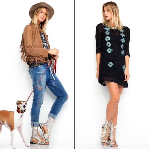 Style it with: For a day at the tents, complement the effortlessly chic look of this embroidered dress with a wide-brim hat and gladiator sandals. When the sun finally sets top off the look with a leather fringe jacket.