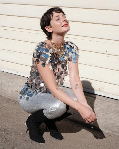 Another trend you’ve likely noticed taking hold are cutouts of all shapes and sizes and on separates like tops, dresses, and even pants. “Some of my favorite pieces from my spring 2021 collection that are slightly extravagant but perfect for going out and having fun with fashion feature tasteful cutouts,” Larian says.