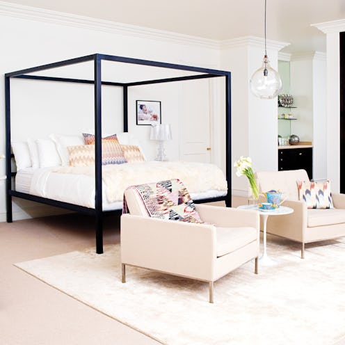 Beyond her uber-glam wardrobe, our ever-inspiring CEO Rachel Zoe also keeps a completely chic personal space. Borrowing an exclusive image from her upcoming book, Living In Style (preorder it now and find out how to receive a bookplate hand-signed by Rachel herself!), we decipher her beautiful boudoir here with sleek suggestions for getting the look. Ready, set, go style your space!
