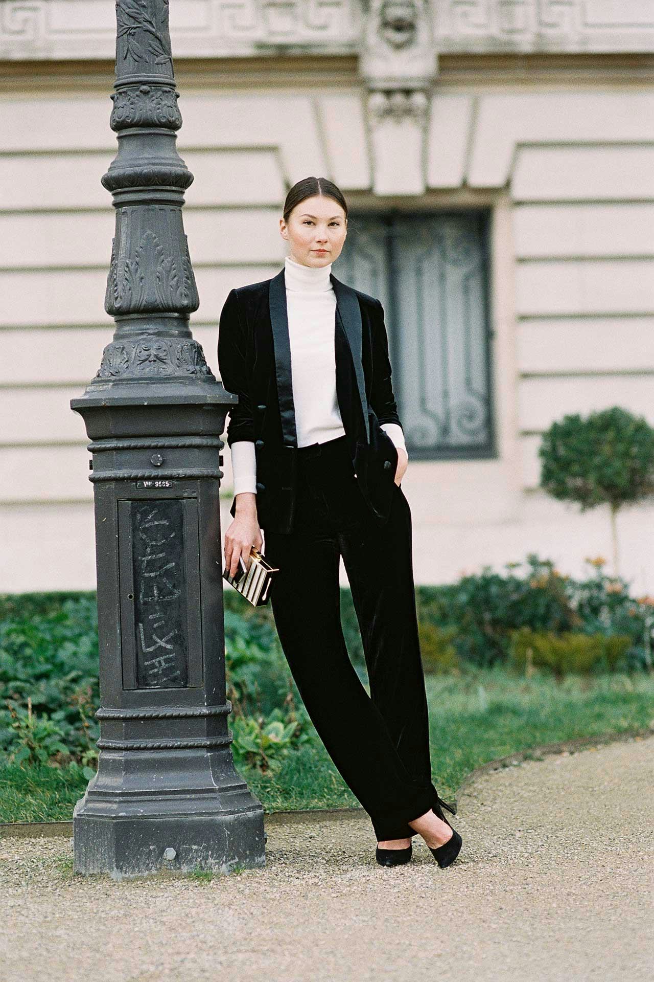 This beautiful blue velvet ensemble is for the fashion girl in you. Pair it with sleek mules and a leather tote.