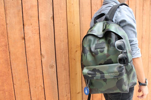 A stylish backpack proves a pragmatic choice for the guy on-the-go. The camo motif is casual and cool, elevated by luxe pebbled leather.