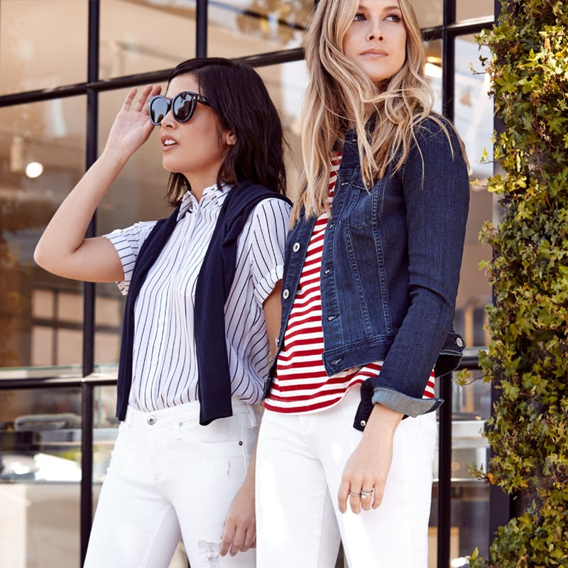 It’s no secret that French women have stylish dressing down pat, and have for decades. Looking cool—not precious—in the warmer months is something they do best. Their secret? Elevating classic staples like striped blouses and chambray shirts with crisp, white denim. Whether you’re heading to lunch in your neighborhood or strolling the streets of Biarritz, these ensembles are sure to deliver that coveted French flair in a modern, wearable way. Since we know white jeans will play a major role in your warm-weather wardrobe, we partnered with AG and styled seven looks for every day of the week.