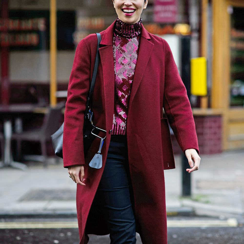 We love a monochromatic look if not for the chic factor, but also the ease of dressing in a single hue. And now, what better shade than all over burgundy for the winter months? While there’s no trick to styling a monochromatic ensemble per se, there are a few things to consider when layering textures. Make like street-style pro like Caroline Issa and look for a statement piece to anchor the outfit and pair complementary separates in simple shapes so as not to overwhelm the look. Another tip? Break up the single shade with one or two pieces in a neutral tone like it a handbag, shoe or pants. Finally, try matching a portion of your makeup to the look to garner mega appeal—opt for a colored shadow, complementary blush or similarly hued lip. Here, 9 key pieces for nailing the all over burgundy look from beauty buys to street-chic separates.