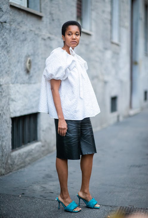 However, this season’s range of silhouettes and details offer a bit more pizzazz than the sleek athletic style — think of cropped pants as the forward-thinking option that’s both versatile and lightweight in the heat. Your go-to leggings outfits can be adjusted to work with similar but more forgiving options. Worn with a T-shirt and sneakers, a button-down and slides, or the fashion-girl-approved dress-over-pants pairing, the look is cool, even to those hesitant to wear actual leggings. Below, find a handful of ways to try the ultimate summer alternative—never any harm in a little experimentation.