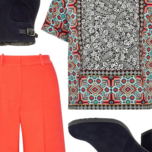 Think office attire has to be dull and monochromatic? Think again. A top like this can breathe new life into otherwise staid separates. If you work in a creative environment, use it as a base for a bold, colorful ensemble.
