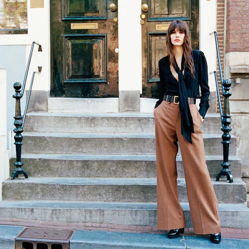 Straight-leg denim is a key silhouette this season. Wear yours with a high-neck blouse and sock-style ankle boots for a transitional look.