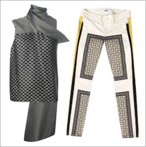 If you want to play with pattern in a low-key, classic way, we love foulard and scarf-print pieces for a boho-meets-European look that doesn’t come on too strong. These handsome prints appear on everything from tailored jackets to pajama-like pants this season. Pair your favorite scarf-print find with structured, solid-color items and gorj heels to complete the look.