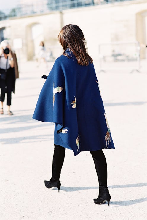 The genius thing about a cape is that you look glamorous no matter what you're wearing underneath (long johns, we're looking at you).