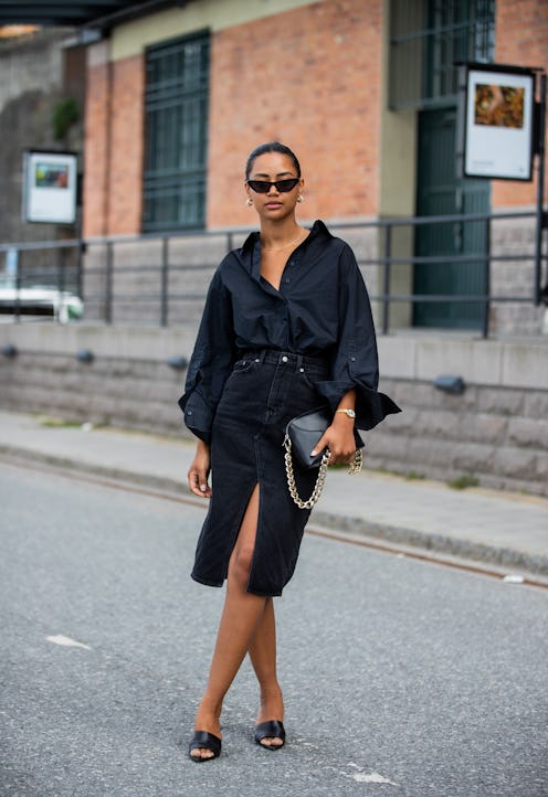 I've never been one to opt for a denim mini — it's just not my thing. A denim midi, however, is a different story. I'm loving the look of an A-line or pencil denim skirt paired with a crisp white button-down or ribbed tank. For a transitional outfit, I plan on layering my skirt over boots and swapping in a sleek mule or ballet flat come spring.