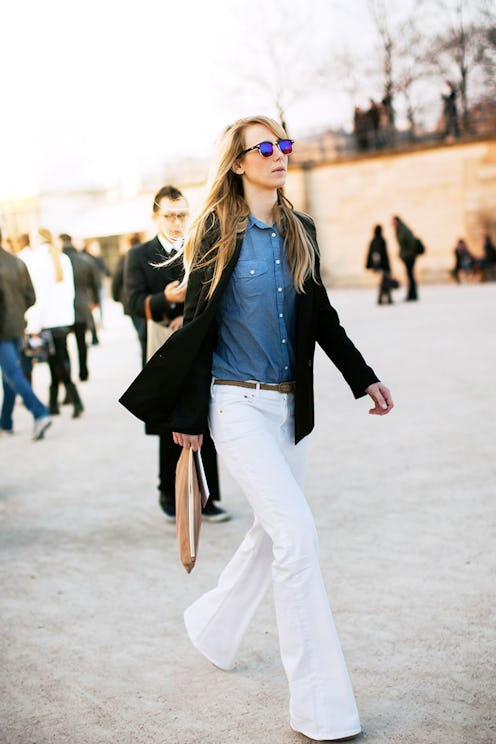 "White jeans are a must, and we love that the zipper on this pair keeps them from feeling boring."