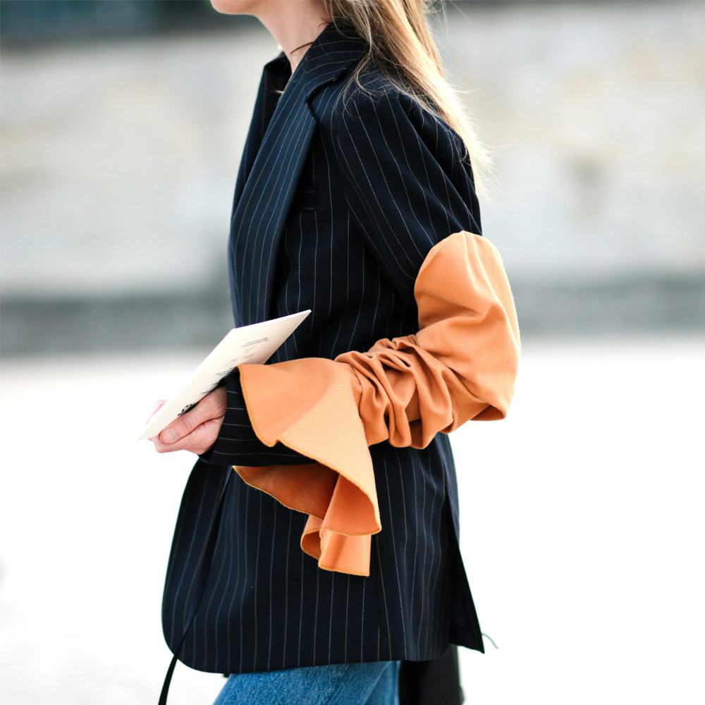 A blazer and jeans combo is endlessly chic—a dramatic sleeve takes it one step further.