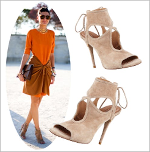 Tired of your summer attire already? Start thinking ahead to fall, while staying relevant now, with transitional separates. Here, we have a sleek example of an in-flux look inspired by the street style of modern fashion plate Giovanna Battaglia.