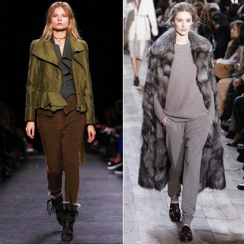 We never thought our love for sweatpants (or general laziness) would be chic. Thanks to the Fall 2014 runways of heavy-hitters like Isabel Marant and Michael Kors, sweatpants—once associated with giving up—are now a legit fashion piece. Since hitting the streets in slippers does not a style star make, we give you two realistic ways to wear the trend out and about. (Who knew we were so stylishly dressed for our Homeland marathons?)