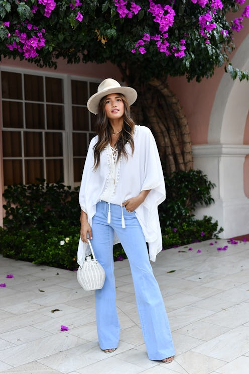 Even the most fashion-obsessed women understand the value of low-maintenance outfits in the summer months. After all, who wants to angst over ensembles when there is outdoor fun to be had? To facilitate effortless dressing, we’ve culled an affordable piece that can be styled a myriad of ways and looks great on everyone. Did we mention it makes packing for vacation an absolute cinch? Here, some of our favorite influencers are showing how to style a lightweight white caftan—this version features pom-pom embellishment and a lace-up front–with virtually everything in your closet.