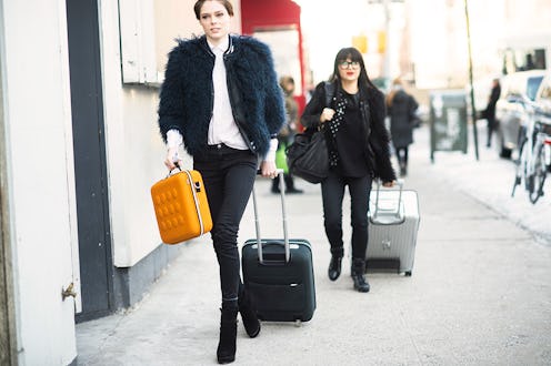 Driving long distances can tempt you to wear the comfiest clothes you own, but your first impression when you step out of the car will be slightly (okay, definitely) lagging. Ditch your leggings for stretch-twill pants, and top with a comfy sweater-and-coat combo. Add in a sleek leather backpack and cute snow boots and you'll look like you just stepped out of the house.