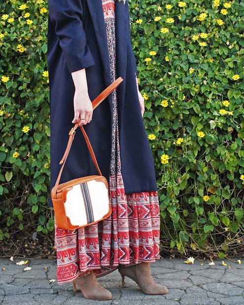 Styling Tip: If you're dying to show off this crisp linen and leather bag now, we totally understand, and yes, it's possible! Layer a menswear coat over a bohemian-printed dress and you're good to go.