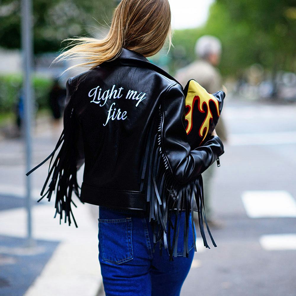 Take your leather jacket to the next level with The Mighty Company. Its moto-inspired designs are unique unto themselves, but the option to personalize (for an extra $150) via initials, an artful design or a play on words (a look recently spotted on Gigi Hadid) is what's really fresh.