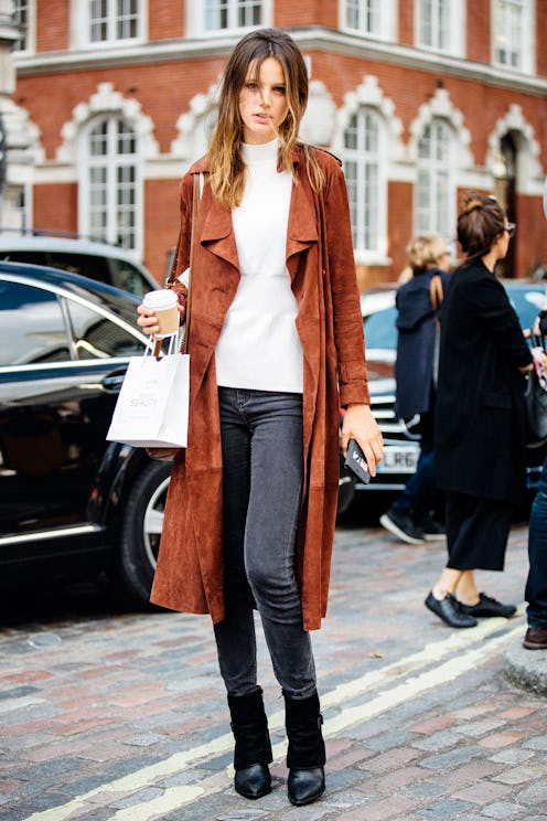 There are only a select few mainstays that are present in every woman’s wardrobe, and we can all agree that the skinny jean is on that list. Flattering for many body types and easy to throw on, this longtime staple can be dressed up or down any day of the week. However, with such major appeal comes the risk of boredom and laziness. To shake up the obvious jeans-and-sneakers combo, we’re challenging you to wear your skinny styles in a fashion-forward manner. Here are four suggestions to get you started.