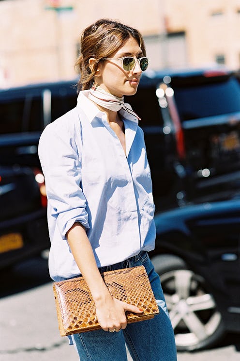 The scarf has officially become the It accessory among the style set. Whether it’s a bandana or a printed neck scarf, it instantly adds a little something to any outfit—from a basic tee-and-jeans combo to a statement dress. We’re here to show you how to make the most of this essential with ten different ways to tie it. Watch below to score our tips.