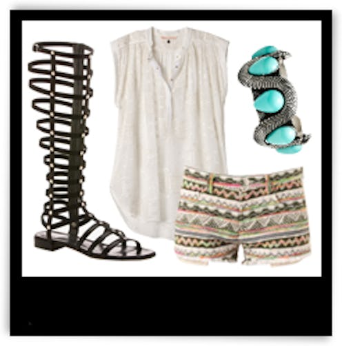 For today’s installment of Saturday Style, we thought we’d curate a complete ensemble inspired by the glam-meets-boho ambiance of the celebrations currently transpiring in the Coachella Valley. With a flowy embroidered blouse, chic patterned shorts and spot-on accessories, you’ll have no trouble standing out from the sartorial pack as you frolic around the festival fields!