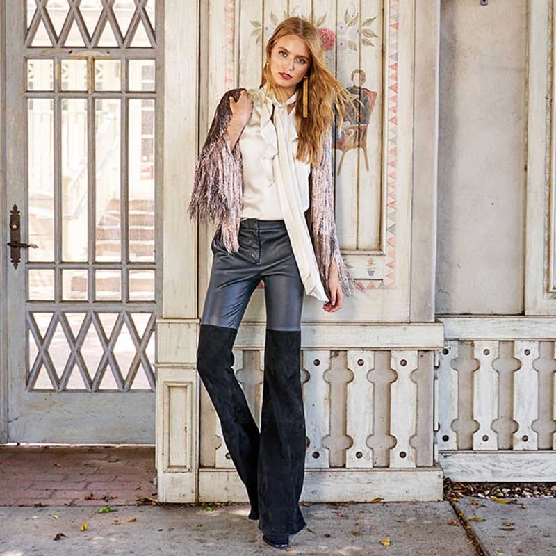 For those who strive to stand out, unique, statement-making separates are treasured for their ability to conjure up look-at-me moments with ease. Two such pieces that fit the bill are Rachel Zoe’s Isla cardigan and Della dress. Both rendered in gorgeous copper metallic fringe that swish at every move, the shimmery staples not only pair seamlessly together but also pack a punch when styled with more relaxed or polished counterparts for day and night. Ahead, score our tips on how to mix and match the must-have hero pieces for the office, daytime outings and evening soirees.