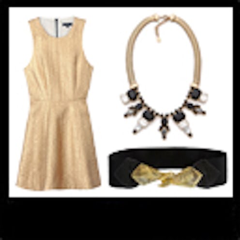 Whenever you find yourself stuck on what to wear, one infallible strategy for determining your direction is to choose a color scheme. To show you how it’s done, we conjured up a cocktail party getup based completely around black and gold—our team’s signature hues! Ideal for any seasonal soirée, this glamorous ensemble strikes the balance of being totally timeless while also evoking a cutting-edge feel. Let the look inspire your next festive uniform and you’re guaranteed to knock it out of the park!