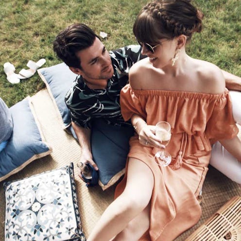 For daytime activities such as picnicking in the park or heading to the pier, you want to feel comfortable and cute outdoors. A utility jacket dresses the frock down and white sneakers keep your feet happy and make for a casual, cool-girl result. Add a fedora for good measure, while a sleek backpack conveniently allows for some hand-holding.