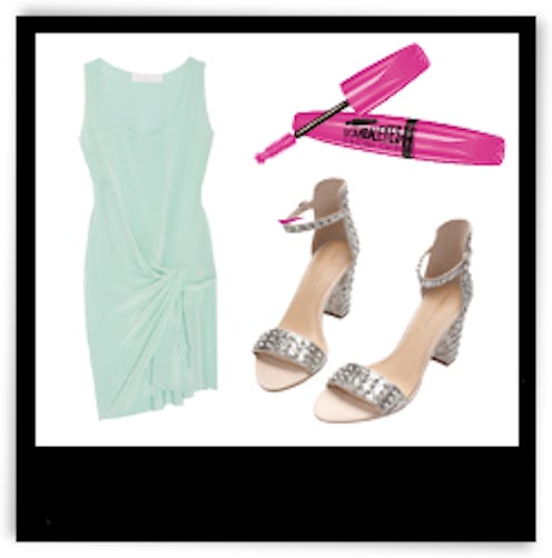 Spring wedding bells are ringing, but our wardrobes we will not be winging! Though the formal occasion is notoriously tricky (how does one look fabulous while not outshining the bride?), your Team Zoe editors are here to remind you that it doesn’t have to be. We’ve styled an enviable, of-the-moment outfit that hits all the right notes, thanks to chic elements of a mint sheath dress, studded sandals and lash enhancing mascara—gorg! Let the look inspire your own spring ceremony attire and you’ll be a glam guest, indeed.