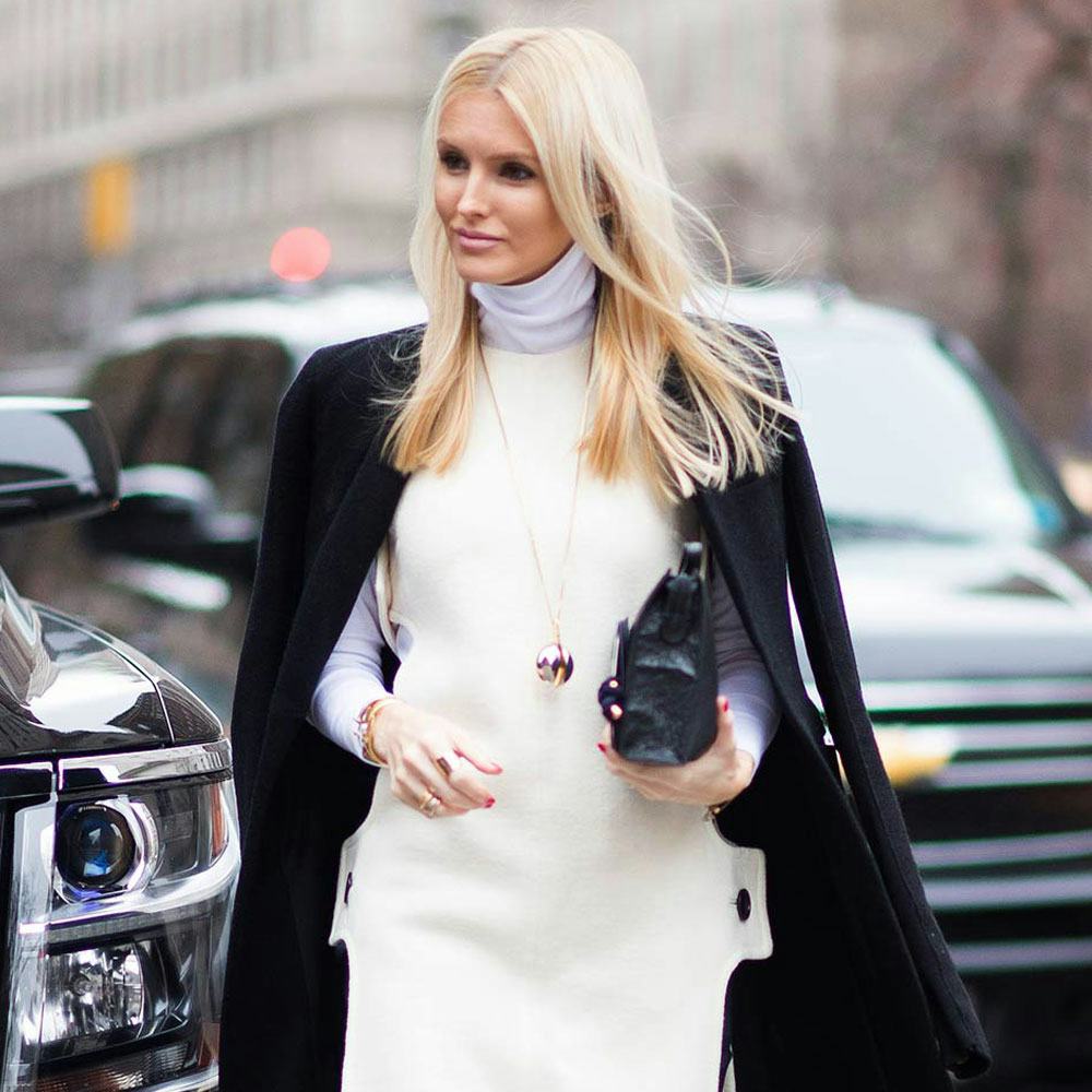 Dresses with open necklines are gorgeous but brisk in an icy climate. A fitted turtleneck provides a seamless layer for winter-proof style. Pro tip: Avoid bunching with a cropped or skin-tight style.