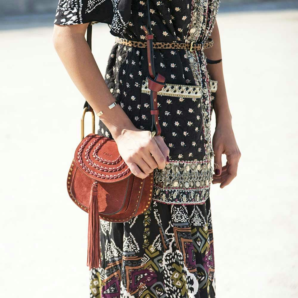 A sleek saddlebag with a dash of fringe is cute without going overboard.