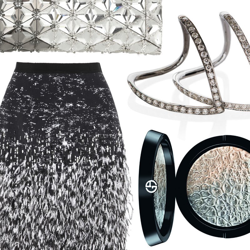 Let texture take over a glamorous night out by choosing a statement-making piece dripping in embellishments. We teamed a crystal-and-feather covered mini skirt with a silk crop top and ombre eyeshadow. Talk about the perfect GNO outfit.