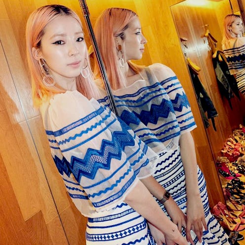 This brand's playful aesthetic—think volume and bold colors via button-downs and blazers—has become a hit among Korean celebrities as well as the style set.