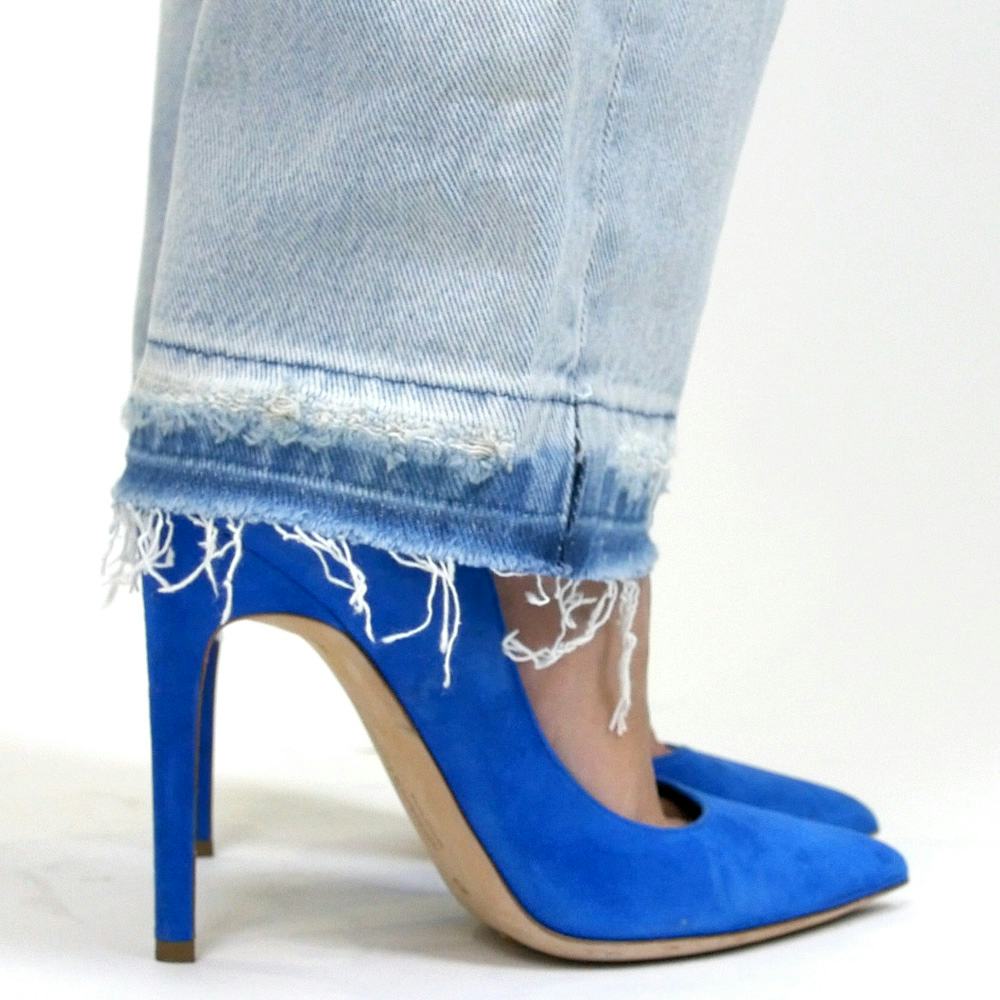 A denim trend that has been totally ubiquitous during fashion month is the unrolled hem. Use this frayed detail an an excuse to resurrect your old jeans—it’s DIY weekend project that won’t cost a thing and is sure to result in your new favorite street-style staple. Here, a step-by-step tutorial on how to fashionably rip the seams out of your denim hems.