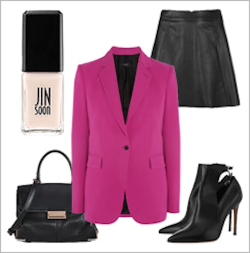 Be a trailblazer for color, and swap out your basic black jacket for a bold pink one! Today, we show you two awesome ways to style the modern piece.