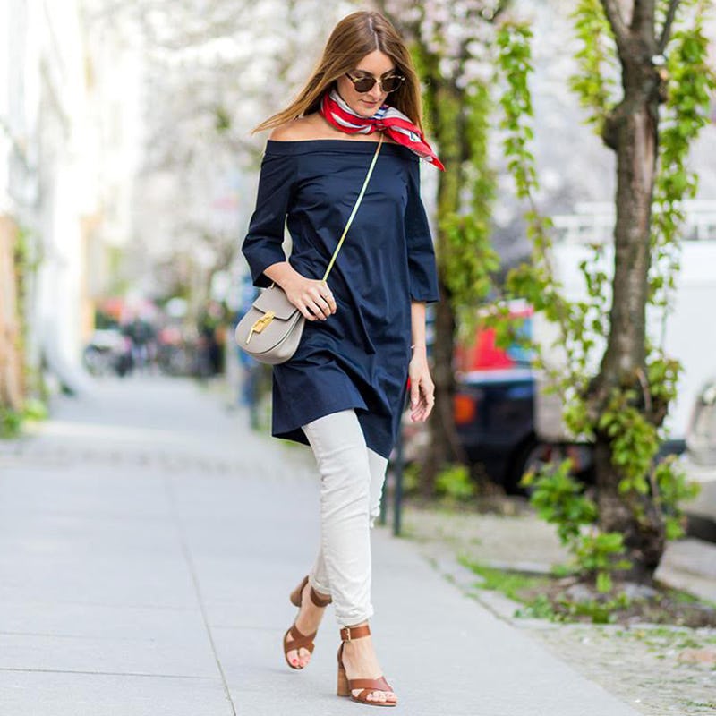 Nineties-inspired crop tops are great staples to pair with high-waisted bottoms, but we suggest upgrading to the elevated and equally sexy off-the-shoulder top, which will continue its reign well into summer.