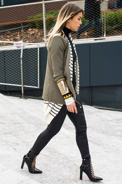 For those lazy days when you just want to be comfortable, black leggings are an easy choice for fuss-free style. And while some will argue that leggings aren’t legitimate pants, any true fashion girl knows just how versatile the bottoms can be when styled well. While spandex styles or cotton blends lend themselves to laid-back ensembles, a leather (or faux!) pair is a great option when you want a more elevated look. Here, 3 outfit ideas to inspire your next leggings look for work, weekend or a drinks date with that Bumble match.