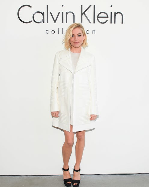 Sienna dared to bare some leg (brrr!) in an all-white look for Calvin Klein's Fall 2015 show.