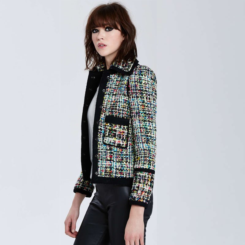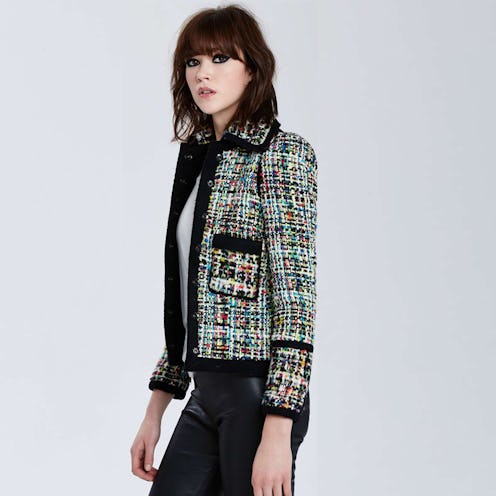 No longer reserved for ladies who lunch, the tweed jacket looks best when paired with a slouchy tee and leather leggings or beat-up denim. The cut and color-combinations of the vintage versions are unique and gorgeous but if you’re not in the market for a retro find, try one of these newer styles instead.