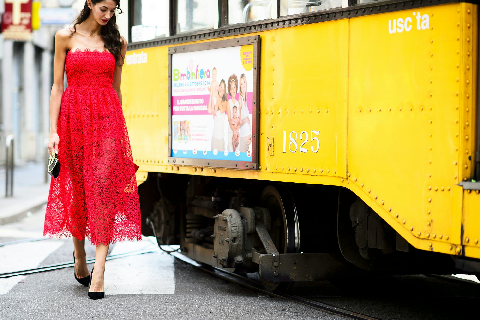 A red dress is the fastest way to look festive, just make sure the silhouette is demure. This long-sleeved midi-length version is perfect when paired with knee-high suede boots. Finish with burgundy nails and a pair of chandelier earrings.